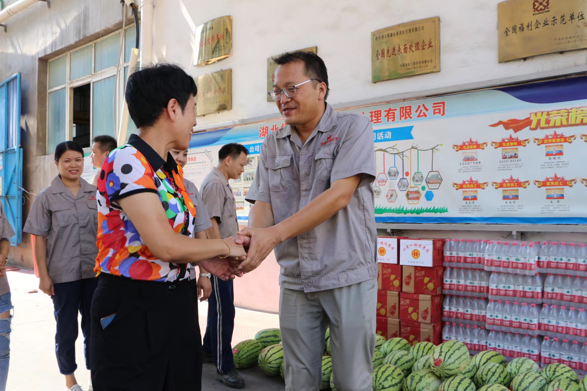 8月9日下午,下陆区总工会常务副主席徐新荣、副主席郭红梅、卢仁才主任等领导同志顶着炎炎烈日,带着降暑降温物资来到湖北恒鑫金属表面处理有限公司,向坚守在一线的员工表示亲切慰问,并叮嘱:高温期间,坚持在岗位的职工,在保障安全生产的同时要加强自我安全保护意识,要做到劳逸结合,预防中暑,注意饮食卫生和休息,同时企业也要积极开展防暑降温工作,有效预防高温中暑和各类事故的发生。
